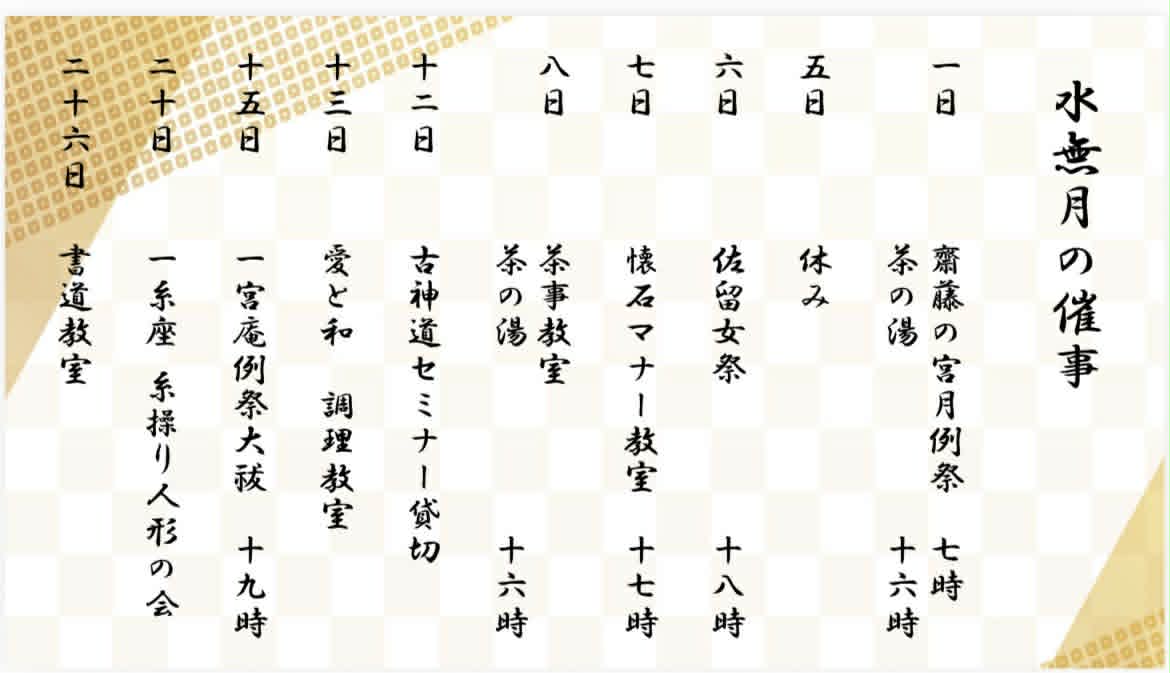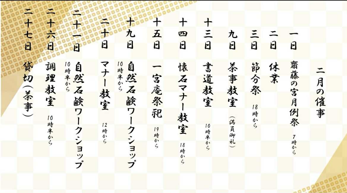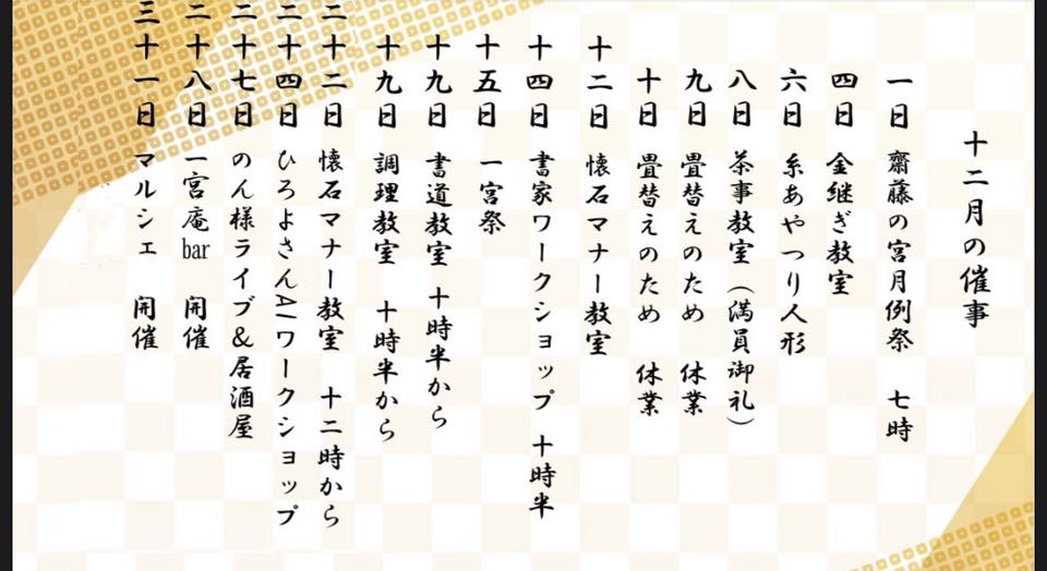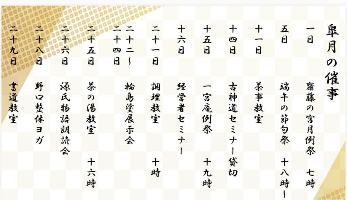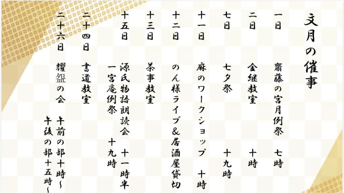 また、月例の他、人日、上巳、端午、七夕、重陽の五節句にも祭祀を通じて思いを馳せたり、会員の皆さんが様々なイベントを開催していますので、是非一度遊びにいらして下さるようお願いいたします。
