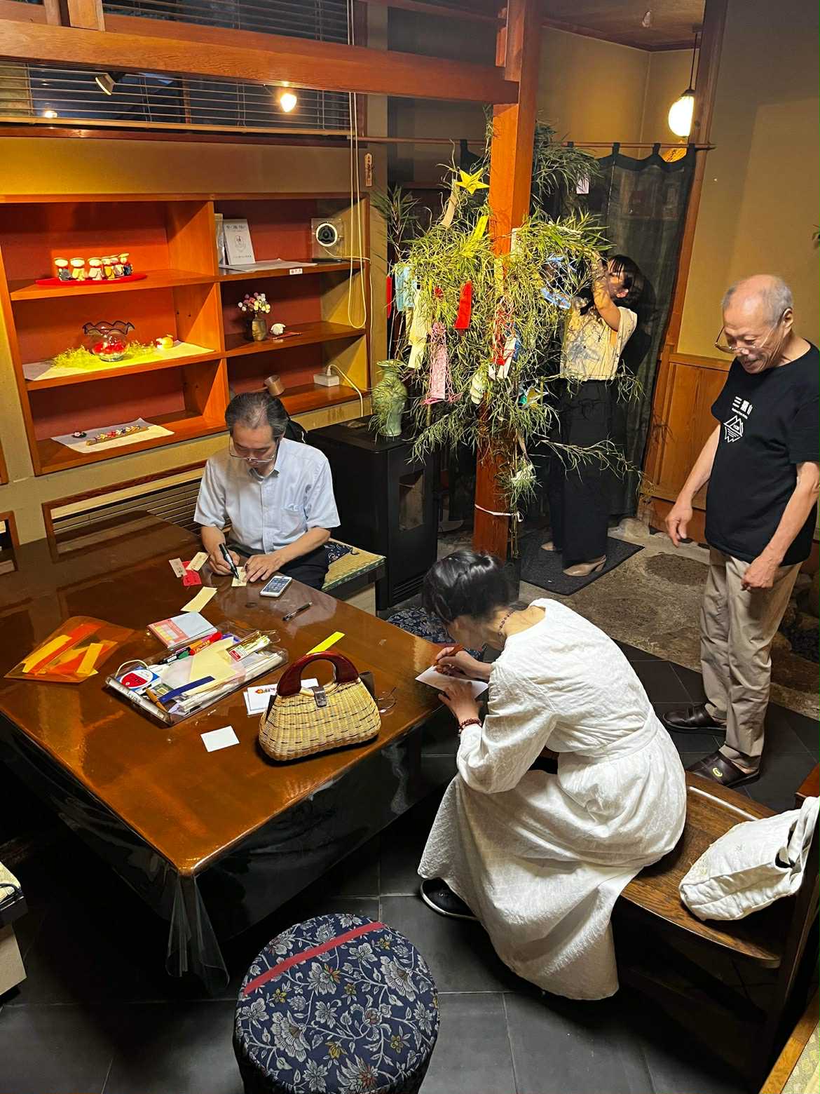 24.七夕(たなばた)の節句祭 7/7 2025年7月7日 最終更新日時 : 2025年11月27日 fumie ■概要 7月7日 七夕(たなばた)の節句 ― 織姫と彦星の伝説にちなんで、願いごとを短冊に書く日。 七夕祭 短冊に願い事を書いて笹に結びます。お祭りは7日の夜7時からと決まっておりますが、早めにいらして、ぜひ願い事をお書きくださいませ ■開催要領 日時: 内容: ■フォトギャラリー