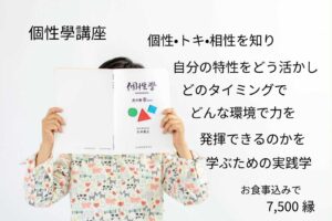 日程:12月19日(金) 時間:11時から12時半、12時半から一宮庵のお食事会費:7500円です。 ご予約の際には生年月日のご記入をお願いいたします。 個性學は、一人ひとりが生得的(生まれ持った)に備わっている内面的『 […]